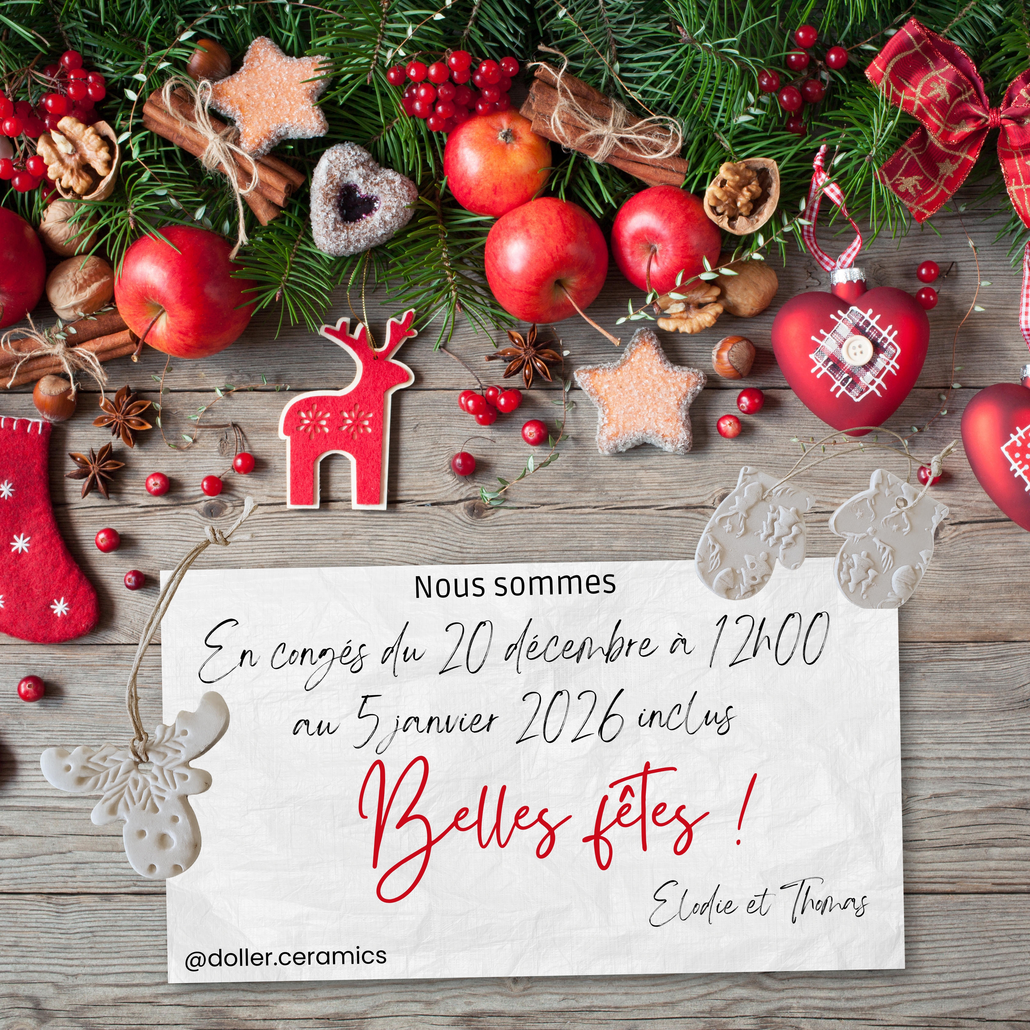 Notre boutique et atelier seront fermés à partir du 20 décembre 2025 à 12h00.